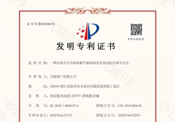 近年来,ag凯发k8国际有限公司坚持以市场需求为导向,以技术创新为核心驱动,持续在平板闸阀的研发领域加大投入。公司不仅组建了一支经验丰富的研发团队,还建立了完善的试验检测平台,确保每一项新技术、新产品在投入市场前均经过严格验证。此次专利的获得,正是企业长期深耕技术积累与注重品质管理的成果体现。